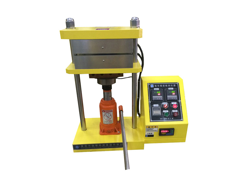 將原料放于鑄模內(nèi),置于本機兩電熱板間,依據(jù)原料性質(zhì)設(shè)置一定壓力及溫度,使原料成型試片以供試驗,做為生產(chǎn)配料之依據(jù)。